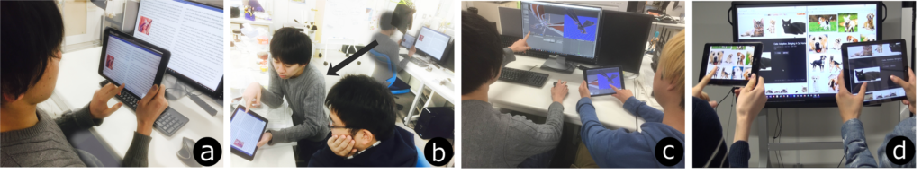 - 萩原 拓真, 高嶋 和毅, モルテン フィールド, 北村 喜文, モバイルカメラを用いたデバイス間アドホックアプリケーション共有,
